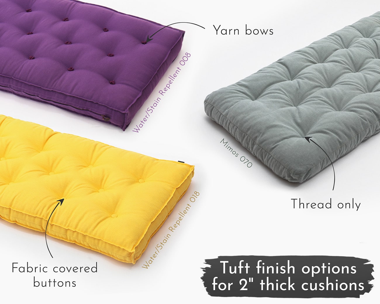 Our two main cushion design options are ”tufted” and ”non-tufted”.