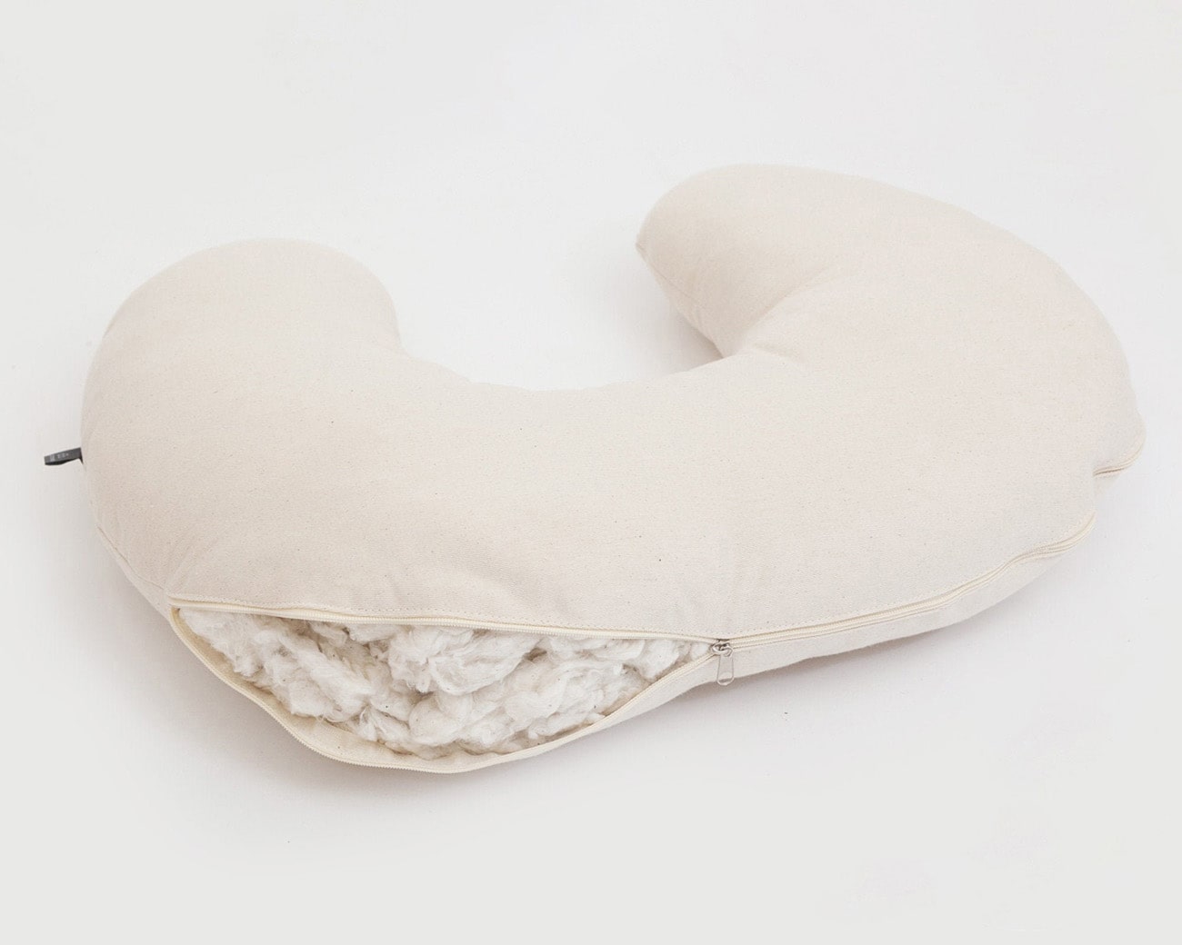 Cottoned nursing pillow filled with organic cotton - zipper detail